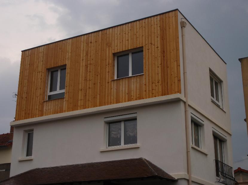 Sur une maison moderne en bois massif, création d'une surélévation au dessus de la cuisine existante. Ouverture pour un accès par le R+1 existant.Lieu : Sannois (95)